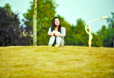 10月23日,湖南农业大学,王李思娜坐在草地上享受着秋日的阳光,这是她休学后第6次回到校园。本报记者 童迪 摄