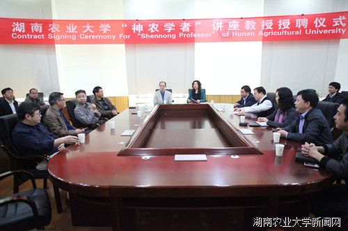 签约仪式上,张立副校长代表学校与周序国教授签订了聘任合同并为其颁发了聘书。她对周序国教授此次受聘我校“神农学者”讲座教授表示热烈欢迎和衷心祝贺,她强调,各相关职能部门以及学院将尽全力为周序国博士在教学和科研工作中提供支持,希望周序国教授在受聘期间能够圆满并超额完成各项目标任务,为学校的教学和科研工作增添新的辉煌,并祝愿周序国教授在我校生活愉快、工作顺利。周序国教授对受聘我校“神农学者”讲座教授深感荣幸,并表示将努力完成各项工作任务,为学校发展作出贡献。