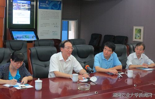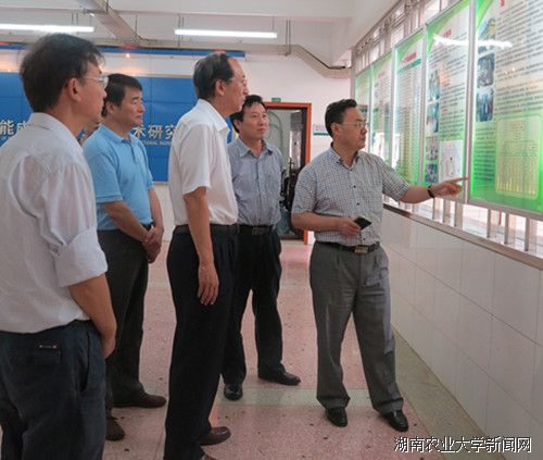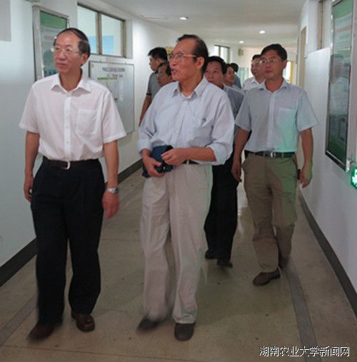 9月15日,科技部农村司司长陈传宏、农业科技处处长许增泰一行来我校考察科技工作。省科技厅副厅长杨治平、农村处处长刘琦,中国工程院院士官春云、党委书记周清明、校长符少辉、副校长易自力陪同考察。
