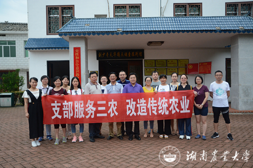 长沙县青山铺镇天华村是该县重点帮扶村,我校作物生态学博导黄璜、蔬菜学学科领衔人刘明月等教授曾多次到该村给农技员上培训課,也使当地文化中心的同志深刻地认识到现代农业技术的重要性。党员们在与青山铺镇天华村党支部及文化中心的同志们座谈交流中了解到,该村因病致贫的贫苦户比较多,青壮年劳力出去打工的多,留村务农的农民年龄大,不懂技术,基本以传统农业为主。同时支部成员还积极与当地文化中心对接,利用我校图书文献资源及人才资源搭建知识扶贫平台,通过提供农业知识咨询、协助农业技术培训、帮助建立互联网+线上线下产品营销等形式助推天华村步入发展快车道。在扶贫攻坚的路上,文化之力必不可少,支部党员们为助力天华村脱贫,捐资采购了520册农学、党建、文学类图书,赠给了天华村。