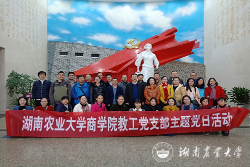 本网讯(商学院 田燕飞)为全面增强党支部的创造力、凝聚力和战斗力,扎实推进支部“五化”建设,创新和提高支部主题党日活动质量和效果,11月17日,商学院党委组织教工党支部赴长沙县红色教育基地开展了以“缅怀先烈,铭记历史 不忘初心,继续前行”为主题的党日活动,在校党委委员、组织部部长兰勇,商学院党委书记李阿利,商学院统战委员杨亦民的带领下,30多名教工党员参加了本次活动。