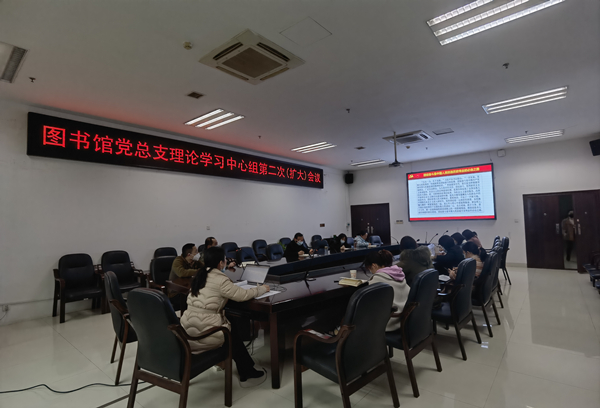 本网讯(图书馆 许慧)3月24日下午,图书馆党总支在124会议室召开了党总支理论学习中心组学习(扩大)会议,党总支书记赵佳荣主持。党总支委员、党支部书记以及支部委员参加。
