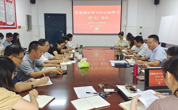 本网讯(水利与土木工程学院 喻璐颖)9月1日下午,水利与土木工程学院在8教南212会议室以“维护学院安全稳定 喜迎党的二十大”为主题召开党委理论学习中心组学习(扩大)会议。院党委书记胡德勇主持,学院班子成员、党支部书记、系主任和管理人员参加。