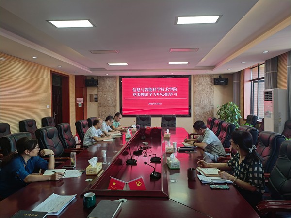 本网讯(信息与智能科学技术学院 喻诚)9月8日下午,信科学院党委理论学习中心组举行专题读书会,深入学习领会习近平总书记在省部级主要领导干部“学习习近平总书记重要讲话精神,迎接党的二十大”专题研讨班上的重要讲话精神,学院党委全体班子成员参会。
