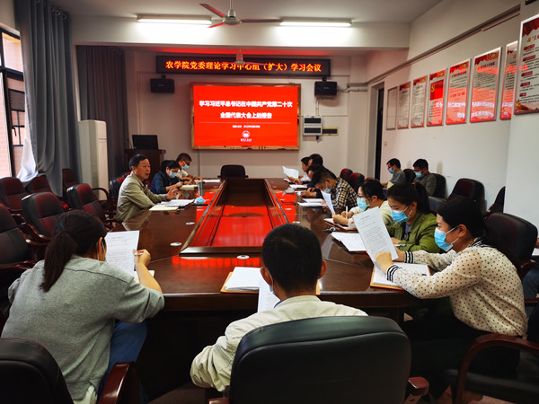 本网讯(农学院 唐艳)10月20日下午,农学院召开“学习党的二十大报告”第一次专题学习会议,学院领导班子成员、党委委员、支部书记以及科级干部参加。党委书记周其林主持。