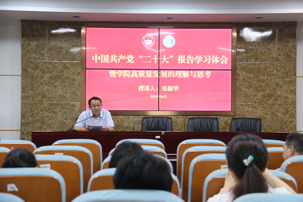 张振华领学了党的二十大报告中关于“高质量发展是首要任务”的重要论述,对当前学院发展现状和发展优劣势进行了深入分析,就如何促进学院高质量发展提出了具体措施和详细意见。