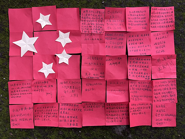 回顾历史,展望未来。党员们在小卡片上书写自己对党、对学校未来的展望与祝愿。学生党员胡智媛写到:光阴荏苒,岁月如梭。从大一迈进大学的校门到如今已过去两年的时光。感谢湘农为我们营造了良好的学术氛围,给我们提供了施展才华的“舞台”,祝愿母校再创辉煌!