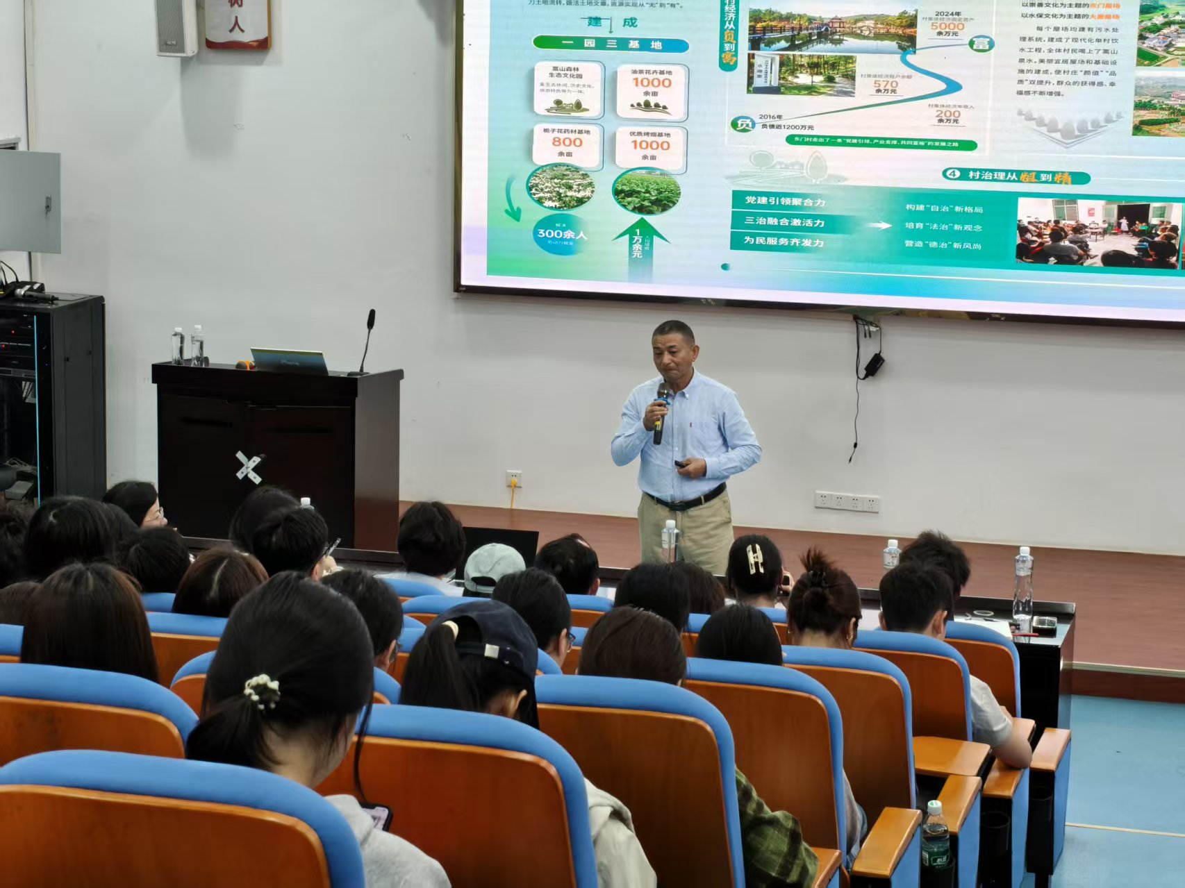 本次活动特邀浏阳市沙市镇东门村党总支部第一书记、湖南省劳动模范张建辉作专题授课。张建辉结合自身扎根基层三十年的工作经历,以“党建引领下壮大集体经济的八个关键”为主题,从坚守为民情怀、坚持勤学善思、强化精细管理、注重科学规划等方面,系统讲解壮大乡村集体经济的实践路径。他勉励青年学生厚植家国情怀,积极服务基层,以实干担当在乡村振兴中贡献青春力量。