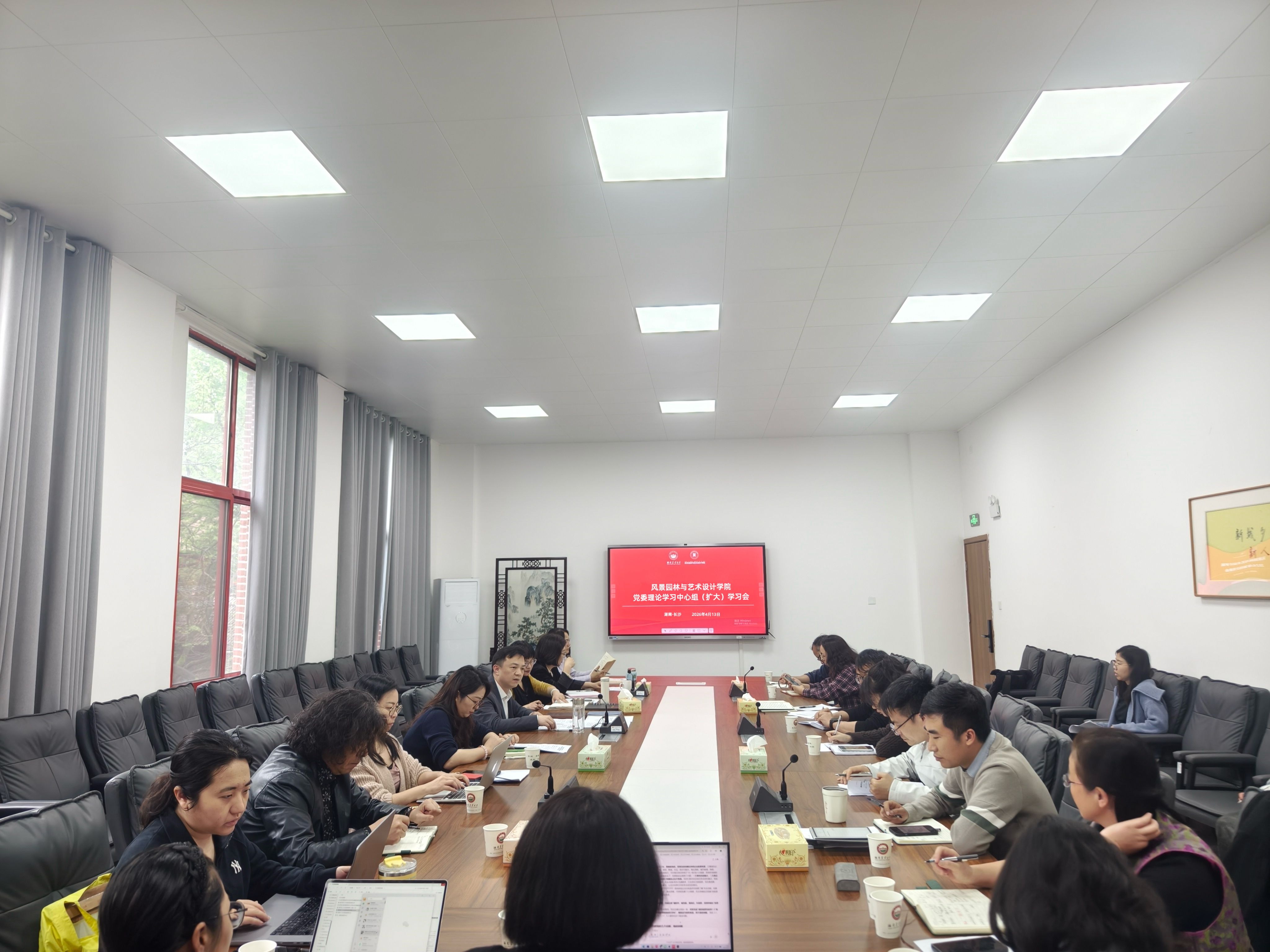 本网讯(风景园林与艺术设计学院 王伟)4月13日,风景园林与艺术设计学院召开党委理论学习中心组(扩大)会议,深入学习领会习近平总书记关于教育科技人才工作的重要论述。学院党委委员、各党支部书记、学术委员会主任、学科点领衔人、基层教学组织负责人及管理服务人员代表参会,院党委书记李方一主持。