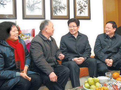 2月12日,腊月二十九,省委书记、省人大常委会主任张春贤冒着严寒,走进大中小学校园和教师家中,看望为教育事业、科研工作做出突出贡献的退休老教师和院士代表,并向全省教育工作者致以亲切的问候和新春祝福。省领导杨泰波、陈润儿陪同看望。