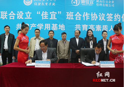 红网时刻10月23日讯(记者 刘怡斌 通讯员 李毅 裴昌胜 实习生 陈秀)10月23日上午,湖南农业大学继续教育学院与湖南佳宜企业管理有限公司举行了“佳宜”班合作协议签约仪式。这是湖南省第一个继续教育学历教育性质的“校企合作”班。