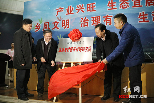 会上,省委宣传部、省农委、省农科院、湖南农业大学相关领导共同为“湖南乡村振兴战略研究院”揭牌。