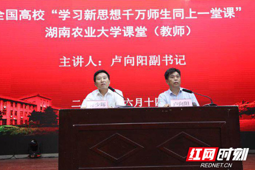 “学习新思想千万师生同上一堂课”湖南农业大学课堂在学校大礼堂开讲。