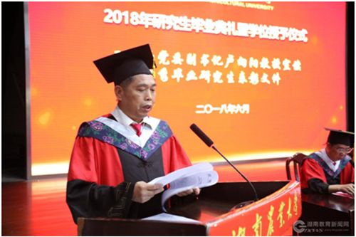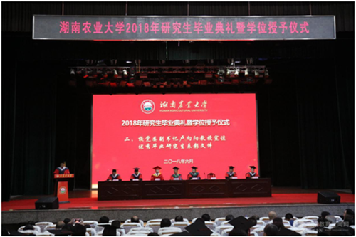 本网讯(通讯员 谢黎莉 张子涵)6月28日上午,湖南农业大学2018年研究生毕业典礼暨学位授予仪式在学校大礼堂隆重举行。