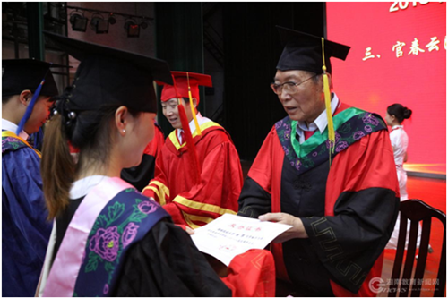 校博士(硕士)学位评定委员会副主席、副校长邹冬生宣读了《湖南农业大学研究生学位授予决议》,校研究生学位评定委员会主席、校长符少辉庄严地为87位博士学位获得者逐一拨苏正冠并颁发博士学位证书,官春云院士和校领导为所有硕士学位获得者拨苏正冠并颁发硕士学位证书。