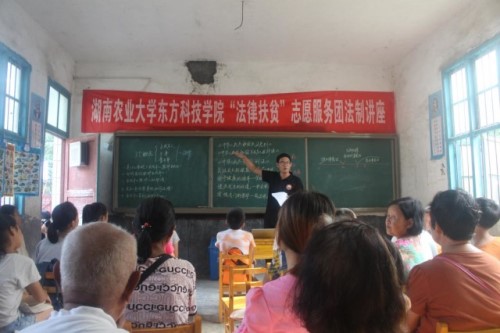 志愿者们为当地人民开展形式多样的理论普及宣讲活动。 东方科技学院“法律扶贫”志愿服务团为明珠村村民和学生们带来了以“未成年人保护和未成年人犯罪”为主题的两场法制宣讲。