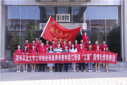 本网讯 为积极响应党的“十九大”精神,贯彻落实新发展理念,紧扣“乡村振兴战略”,7月16日,湖南农业大学工学院“工翼”国情社情观察社会实践团在指导老师王勇乾、白东明的带领下前往张家界市慈利县江垭镇,围绕富硒农业和农村厕所改革展开调研,并对农村留守儿童进行帮扶。一同前往江垭镇的还有工学院副院长莫亚武、党委副书记谢倩、办公室副主任夏慧、辅导员邹亚。
