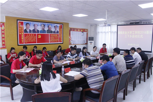 抵达江垭镇后,慈利县副县长谢模强、江垭镇镇长黄明军、慈利县团县委副书记邢利洲、江垭镇党委副书记曾凡银等一行人热情的接待了“工翼”团队,并于江垭镇党委会议室举行湖南农业大学工学院2018年暑期三下乡启动仪式。
