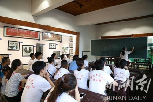 湖南日报·新湖南客户端7月19日讯(通讯员 周宇飞 张子涵 魏雪)江永县女书文化园位于湖南省永州市江永县“女书复活岛”美称的浦尾岛上,是第一批国家级非物质文化遗产名录,具有不可估量的文化价值。7月16日,湖南农业大学“红色筑梦之旅”博士团来到江永县女书文化园,探寻女书文化的传承之路。