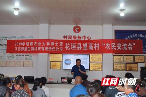 红网时刻7月16日讯(记者 何颖 通讯员 王娅)7月13日,湖南农业大学“峥嵘七十载,助力乡村振兴爱国行”博士团与江苏邦盛生物科技有限责任公司科技扶贫校企同行,在湘西州花垣县麻栗场镇望高村举办了“高效植保,精准施药”农民交流会,上百名农户到场参加会议。