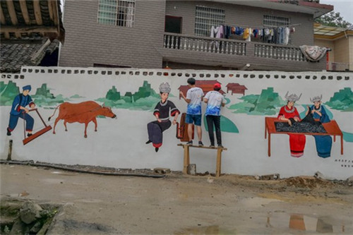 【湖南教育网】湖南农大:多彩墙绘助力美丽乡村(组图)