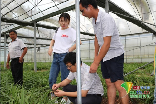 图为杨华副教授与种植人员交流白芨种苗的生长情况。中国青年网通讯员曾泽南