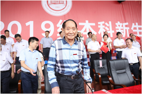 三湘都市报·新湖南客户端9月16日讯(文/记者 黄京通讯员 喻诚 实习生 殷渊 图/何纲跃) 今天上午,湖南农业大学为2019级本科新生举行开学典礼。当“90后”中国工程院院士、世界杂交水稻之父袁隆平抵达会场,该校上万名学子变身“粉丝”夹道欢迎,用热烈的掌声和欢呼声表达对科学家偶像的热爱,校园“秒变”巨型追星现场。
