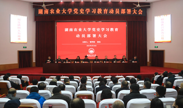 本网讯 (宣传部 庹炼)3月10日下午,学校召开党史学习教育动员部署大会,深入学习贯彻习近平总书记在党史学习教育动员大会上的重要讲话精神和省委书记许达哲同志在全省党史学习教育动员大会上的讲话精神,对学校开展党史学习教育进行动员部署。全体校领导、党委委员,全体中层干部参加。校党委书记陈弘作动员部署讲话,校长邹学校主持大会。