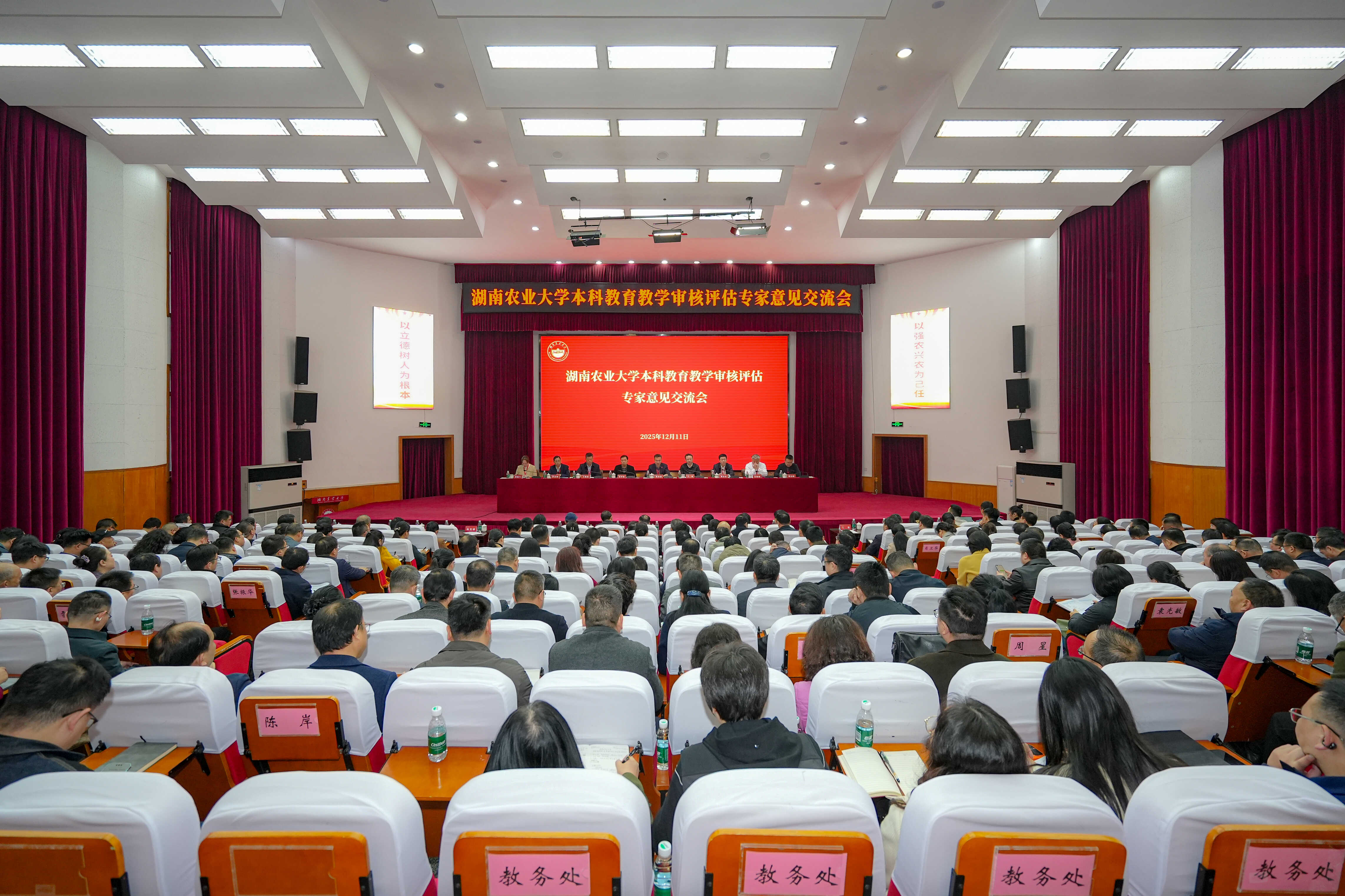 12月11日上午,学校在修业讲堂召开本科教育教学审核评估专家意见交流会。本科教育教学审核评估专家组组长、南京农业大学校长陈发棣教授以及专家组成员,湖南省教育厅党组成员、副厅长兰勇及高等教育处有关领导,全体校领导出席会议。学校全体中层干部、校评估办成员、教务处全体科级干部参加会议。会议由专家组组长陈发棣主持。