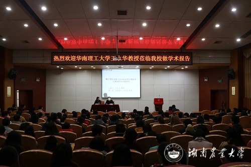 本网讯(食品科学技术学院 盛洁 刘洋 欧亦钦)11月29日上午,应食科学院及研究生院的邀请,华南理工大学王永华教授于学海厅作了题为“酶工程在油脂工业中的应用关键技术与基础科学问题研究”的报告。出席本次讲座的有食科学院院长邓放明,院党委副书记林曙,团委书记盛洁,学工组老师刘洋等,学院部分师生参加了本次讲座。