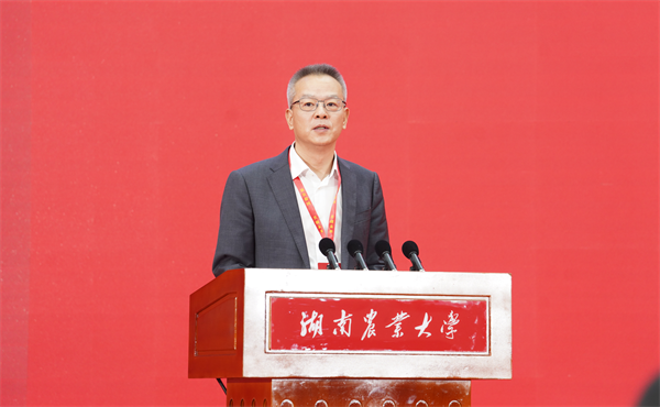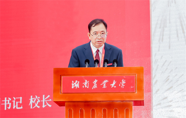 邹学校作题为《强农报国 共创未来》的大会致辞。他表示,120年来,为时养器始终是湘农人的坚定信念,朴诚奋勉始终是湘农人的精神内核,求实创新始终是湘农人的价值追求,强农报国始终是湘农人的使命担当。新时代的湘农,坚守立德树人之本,培育了大批知农爱农新型人才;集聚科技创新之势,加速了“双一流”建设步伐;扛牢服务“三农”之责,书写了助推乡村振兴的湘农篇章;绘就文化校园之美,构建了和谐文明的精神家园;坚持开放办学之道,开创了国际交流合作的新局面。他强调,展望未来,我们将主动求变,以高水平农业人才培养为强国建设提供有力支撑;挺膺担当,以农业科技创新赋能“国之大者”;守正创新,努力将优秀传统文化转化为师生员工的精神内涵和品性追求;胸怀天下,以合作交融推动构建人类命运共同体,汇聚全校师生员工和广大校友的磅礴力量,踔厉奋发、勇毅前行,在强国建设、民族复兴的新征程上再作新贡献、再创新辉煌。