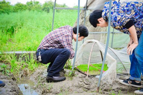 下午15时,张院长带领学生检查基地劳动进展,并对蔬菜种植,水稻、玉米杂交试验方案进行指导。