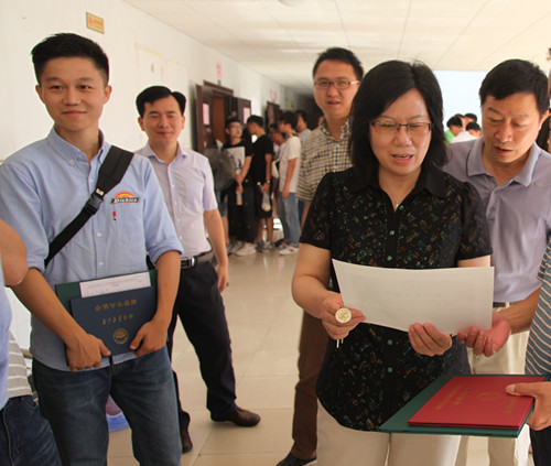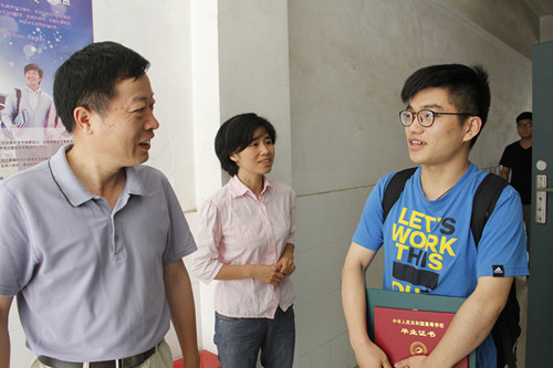 朱翠英院长、汪建训副院长、肖化柱副院长在经管学部与前来陪同领证的家长热切交谈。“学院真的是将学生当做孩子看待,辛勤培育了四年,临别还来送行,我们的选择是无悔的。”家长如此感慨。