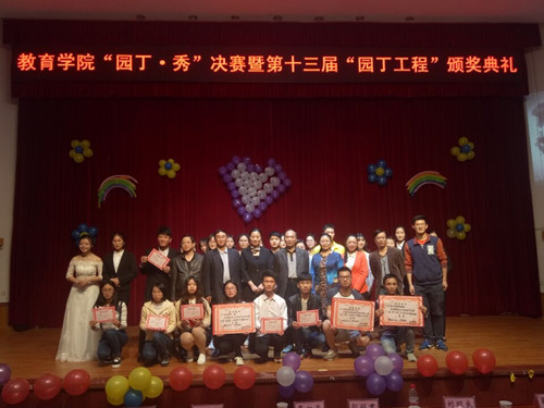 本网讯(教育学院 吴磊)4月27日,教育学院在学术报告厅举办了园丁·秀决赛暨第十三届园丁工程颁奖典礼,校团委书记覃红燕,教育学院院长郭丽君,副书记刘庆华,副院长夏金星、温圣贤、王慧出席。