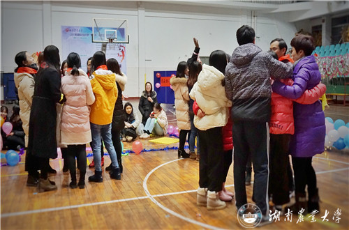 本次迎新喜乐会不仅有精彩纷呈的节目,还设计了许多游戏环节,师生共同参与游戏。在拔河比赛中,粉队力争上游,奋勇争先,取得了胜利;在“快乐传真”游戏中,每队成员之间依次表演成语,考验相互之间的默契,妙趣横生;在“爱的抱抱”游戏中,大家互相拥抱在一起,忘却了冬日的寒冷,留下了温暖的记忆。