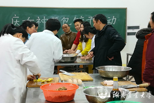 本网讯(食科学院 童玲)3月8日下午,食科学院一楼实验室传出一阵阵欢声笑语,由学院工会组织开展的“庆三八·包水饺”活动如期举行。分管校领导张立副校长出席活动,学院共30多名教职工参加了本次活动。
