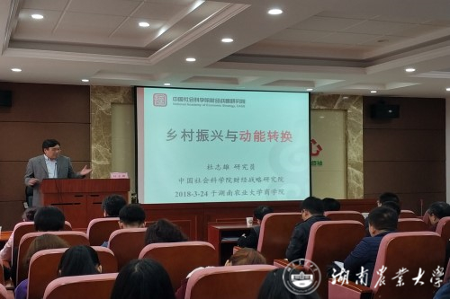 本网讯(商学院 李文涛 张银鑫 郑迪)3月24日上午,商学院第82期商贸论坛于十教北503举行。本次论坛主讲嘉宾为中国社会科学院财经战略研究院党委书记、副院长杜志雄,论坛主题为“乡村振兴与动能转换”。商学院院长兰勇,副院长刘纯阳、杨亦民莅临本次论坛。商学院教师代表以及部分研究生、本科生参加了本次论坛。