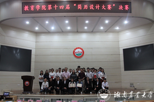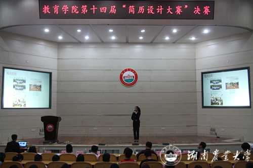 本网讯(教育学院 蒋科 曾玉叶)4月20日晚,教育学院十四届简历设计大赛决赛在图书馆大成厅举行。来自不同年级的12名选手,在经历了简历筛选、班级初赛、学院复赛层层选拔之后,终于跻身决赛,进行激烈角逐。校招生与就业指导处副处长姚文昌,校招就处就业指导教研室主任潘斌,湖南加农正和生物技术有限公司培训经理蒋盛娅、新梦想有限公司董事长彭立、易A教育董事长兼人力资源部负责人胡兴峰。教育学院党委副书记刘庆华、副院长温圣贤等院领导和学工组老师担任比赛评委。