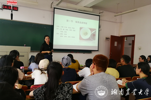 本网讯(园艺园林学院 金密)为推进课堂教学改革,进一步提高课堂教学质量,5月24日下午,园艺园林学院在第十教学楼南422教室举行公开示范课教学活动,主讲教师为茶学系青年教师李适副教授,授课班级为2015级茶学卓越班。学院全体领导、学院60余名教师参加了此次活动。