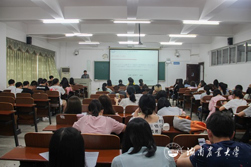 本网讯(外国语学院 杨晶 罗蜜蜜)6月14下午,我校外国语学院于九教北406举行了一场主题为“从日本老年设施看地域感觉和经营理念”的日语讲座。此次讲座由外国语学院党委副书记汤帮耀主持,来自日本鹿儿岛大学的片桐资津子教授担任主讲人。外国语学院日语系全体老师出席本次讲座,2015-2016级日语专业全体学生到场聆听学习。