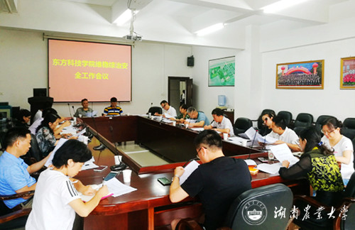 东方科技学院资产管理与后勤保卫部主任董园领学了《湖南农业大学综治工作年度考评实施办法(试行)》文件,从考评对象、内容、方法步骤及考评结果一一进行解读;杨俊兴副主任根据综治考评细则给各职能部门做了详细的任务分解,明确了综治安全责任与工作;院学工部主任言勇做了学生安全工作隐患排查汇报,从完善安全隐患排查制度、信息畅通机制到健全一二级库人员档案等措施,全方位为学生营造了一个安全稳定的学习成长环境。