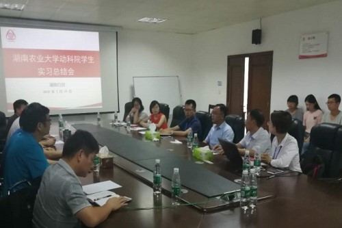 本网讯(动物科学技术学院 肖圆圆 周天天)7月15日上午,湖南农业大学动物科学专业百宜生产实习总结暨表彰大会在公司总部多功能会议室举行,动科学院党委书记翁波、副院长贺喜、动科系主任范志勇、副主任何俊,产学研项目办主任唐圣果、公司总裁尹奇志、总经理陈文斌、湖南生态养猪技术研究院院长陈清华及相关人员出席,百宜公司人力资源部邱曼仁经理主持会议。