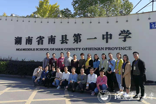 本网讯(外国语学院 龚维国 曾亚平)10月26日清晨,我校教务处孙志良处长、招生与就业指导处姚文昌副处长、外国语学院党委书记江先华和汤帮耀副院长一行八人,前往南县看望外国语学院和东方科技学院英语专业在益阳南县实习的师生。今年,外国语学院按教学计划共派出了52名英语专业的学生和2名指导老师到益阳南县开展了为期一个月的教育实习。