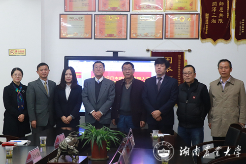 交流座谈会在九教南509会议室举行。湖南农业大学副校长易自力,外国语学院院长胡东平、党委书记江先华、副院长汤帮耀及日语系主任许建明老师、何环老师与佐佐木隆教授、杨华老师进行了亲切会谈。