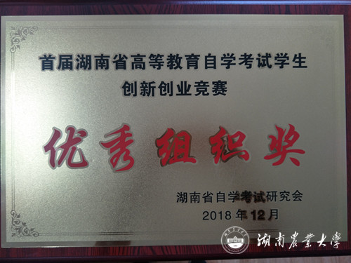 获湖南省首届高等自学考试学生创新创业竞赛优秀组织奖