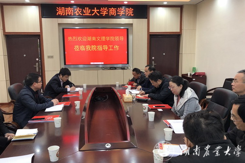 学校商学院针对专业评估工作与湖南文理学院经济与管理学院相互交换了意见,并希望前往贵院考察学习。通过此次学习交流,进一步加强了学院与外校的联系和交流,扩大了学院的社会影响力。