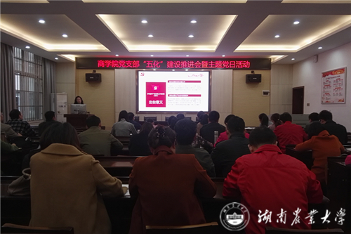 本网讯(商学院 田燕飞)为贯彻落实省委教育工委和学校党委关于推进党支部“五化”建设的文件精神,进一步做好学院党支部对标创建工作,4月11日下午,商学院党委组织全体教工党员和学生党员同时举行了党支部“五化”建设推进会暨主题党日活动。