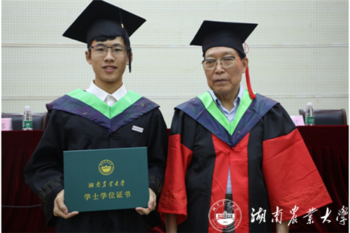 学院党委副书记祖智波代表学院宣读了 “湖南省优秀毕业生” “湖南农业大学优秀毕业生”和“湖南农业大学农学院优秀毕业生”表彰决定,官春云院士、全体院领导、院学术委员会成员分别颁发了院级优秀毕业生及学士学位证书。