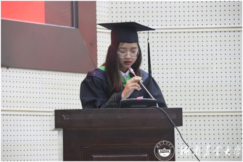 毕业生代表瞿媛和家长代表罗夏萃女士分别发言。瞿媛同学结合自己在湖南农业大学四的成长经历,感谢学校的培育之恩,在以后的工作或学习中拼搏进取、奋发图强,不辜负学校寄予的期望。罗夏萃女士感谢各位领导和老师,在孩子四年求学过程无微不至的关怀,祝福学院蒸蒸日上、再创辉煌,祝福学子前程。