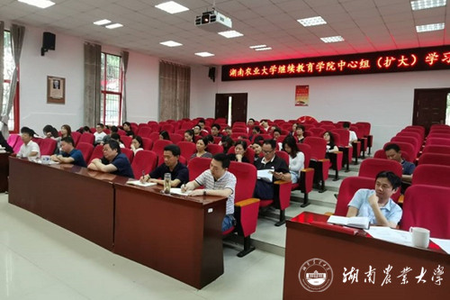 本网讯(继续教育学院 裴昌胜) 6月6日下午,继续教育学院中心组扩大学习在5教T4举行,教工第二党支部全体党员参加学习。会议集中学习了湖南省教育大会精神、《湖南农业大学党员领导干部“八小时以外”活动监督办法(试行)》《湖南农业大学关于进一步规范“三项支出”管理工作的通知》《湖南农业大学领导干部深入基层联系学生工作实施方案》及教育厅发布的两个通报,并就学校关于建党98周年和建国70周年有关部署做了说明,就落实《湖南农业大学科研经费管理办法》作了提醒。